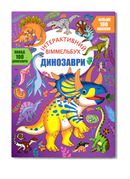 Ваша дитина полюбляє роздивлятися яскраві картинки? Віддає перевагу книжкам-розмальовкам? Обожнює клеїти наліпки? Час спробувати щось нове! Їй обов’язково сподобається наш інтерактивний віммельбух «Динозаври». Ця книжка виконає всі бажання малюка: тут є і детальні розмальовки з барвистими наліпками, і захопливі ілюстрації, і найголовніше — веселі та цікаві розвивальні завдання. Дитина вчитиметься рахувати, тренуватиме пам’ять і увагу, а також познайомиться зі світом динозаврів.