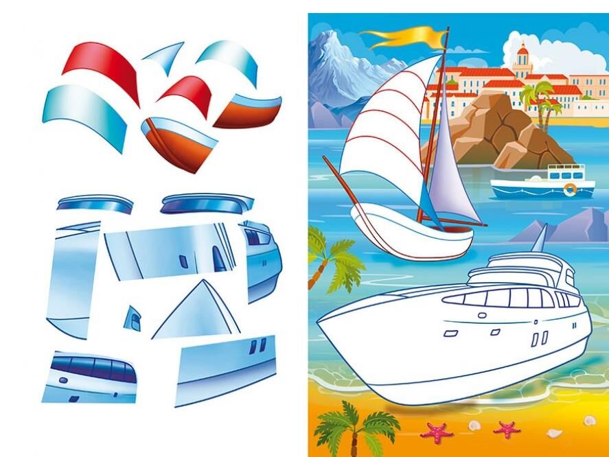 - Барвисті картинки з мотоциклами, повітряними кулями, яхтами та іншими транспортними засобами сприятимуть розвитку дрібної моторики, пам’яті, уяви та мовлення.