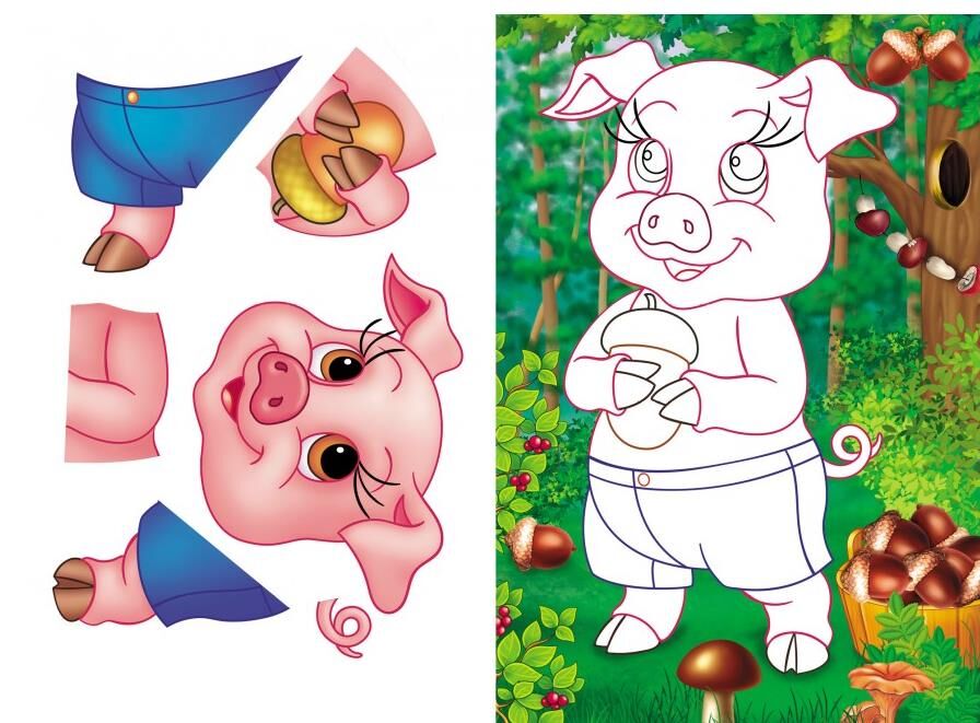 - Дитина зможе вирізати й наклеювати деталі, створюючи повні зображення улюблених тваринок.