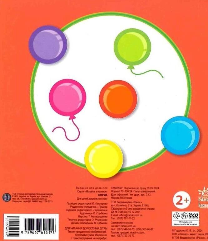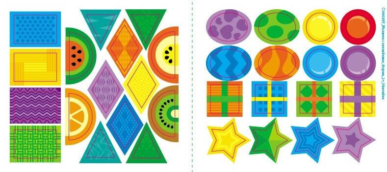 У кожному виданні кольорові наліпки. З ними малюк легко опанує основні кольори та форми, познайомиться з величинами.