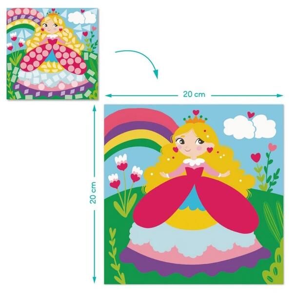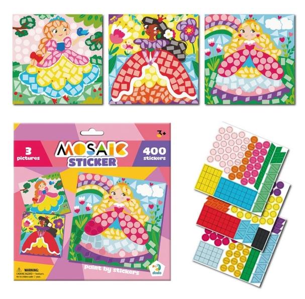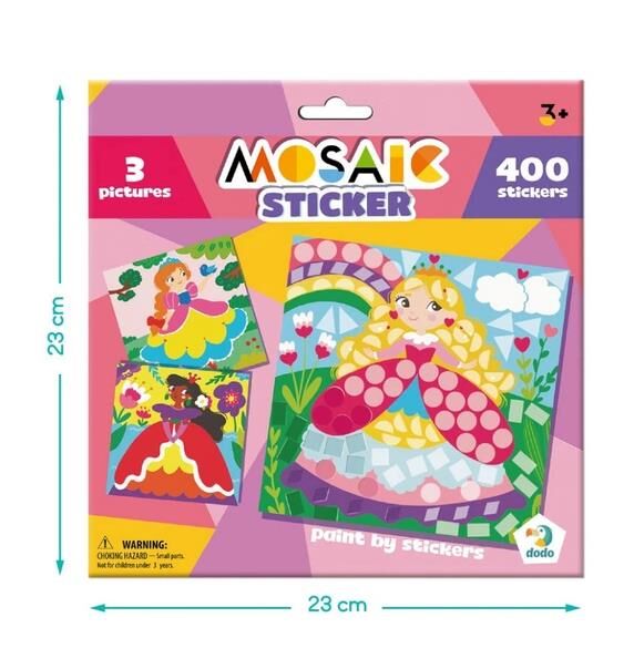 Занурте вашу дитину у світ творчості з яскравим набором "Мозаїка з наліпок" від Dodo! Цей набір пропонує захопливий спосіб створити власні шедеври, що ідеально підходить для розвитку важливих навичок у малюків. Забудьте про клей та фарби. Дитині потрібно лише знайти відповідну наліпку та приклеїти її на відповідне поле. Це безпечний та захопливий процес, який не потребує ножиць чи інших інструментів. Створення мозаїки чудово тренує дрібну моторику рук, зорово-моторну координацію, посидючість, а також допомагає вивчати кольори та форми. У набір входять 3 картинки із зображеннями принцес, які потрібно прикрасити більш ніж 400 наліпками. Готові роботи стануть чудовою прикрасою дитячої кімнати або подарунком. Завдяки великим деталям та простим інструкціям, набір підходить навіть для маленьких творців.