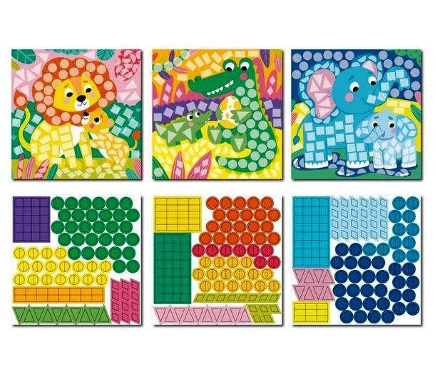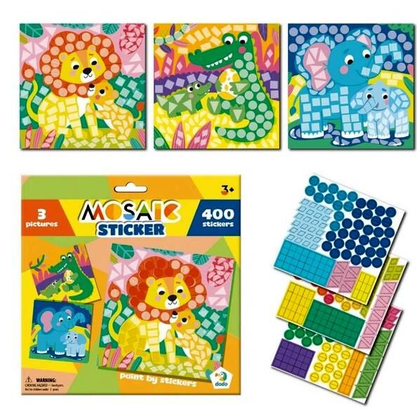 Зануріть вашу дитину у світ творчості з яскравим набором «Мозаїка з наклейок» від Dodo! Цей набір пропонує захоплюючий спосіб створити власні шедеври, що ідеально підходить для розвитку важливих навичок у малюків. Забудьте про клеї та фарби. Дитині потрібно лише знайти відповідну наклейку та приклеїти її на відповідне поле. Це безпечний та захоплюючий процес, який не потребує ножиць чи інших інструментів. Створення мозаїки чудово тренує дрібну моторику рук, візуально-моторну координацію, посидючість, а також допомагає вивчати кольори та форми. У набір входять 3 картинки із зображеннями лева, слона та крокодила, які потрібно прикрасити більш ніж 400 наклейками. Готові роботи стануть чудовою прикрасою дитячої кімнати чи подарунком. Завдяки великим деталям та простим інструкціям, набір підходить навіть маленьким творцям.