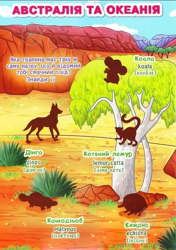 За допомогою цієї книжки ти зможеш відвідати різні континенти нашої планети. Ти познайомишся з чудовими тваринами і почнеш вивчати англійську мову. Наклей усі наліпки з тваринами на потрібні місця. Дізнавайся про нове, вивчай англійську і подорожуй разом з цією книжкою!