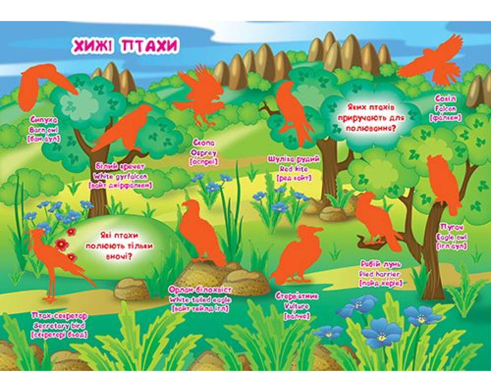 Ласкаво просимо в дивовижний світ пернатих! За допомогою цієї книжки ти познайомишся з найбільш незвичайними і красивими птахами. Ти дізнаєшся багато нового про їхнє життя і почнеш вивчати англійську мову. Наклей усі наліпки з птахами на потрібні місця. Дізнавайся про нове, вивчай англійську і пізнавай навколишній світ разом з цією книжкою!