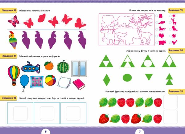 Із книжкою «Логічне мислення» дитина повправляється шукати спільне й відмінне між предметами, доповнювати логічні послідовності та розгадувати судоку, зіставляти предмети з їхніми тінями й віддзеркаленнями; орієнтуватися в просторі, визначаючи зображення фігур збоку й згори, а також доповнюватиме малюнки й малюватиме фігури й візерунки по клітинках.