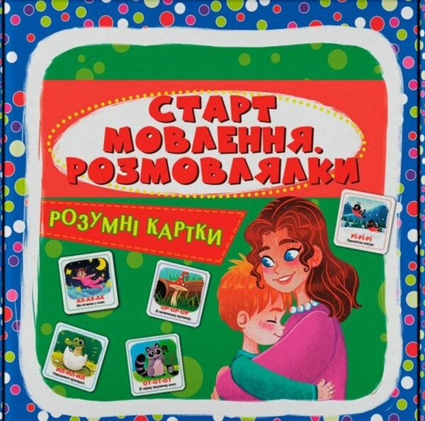 Набір "Старт мовлення. Розмовлялки" включає 30 карток із 60 малюнками та віршиками, ігри з якими посприяють розвитку мовленнєвої активності малюка, навчать його вимовляти прості звуки й склади.