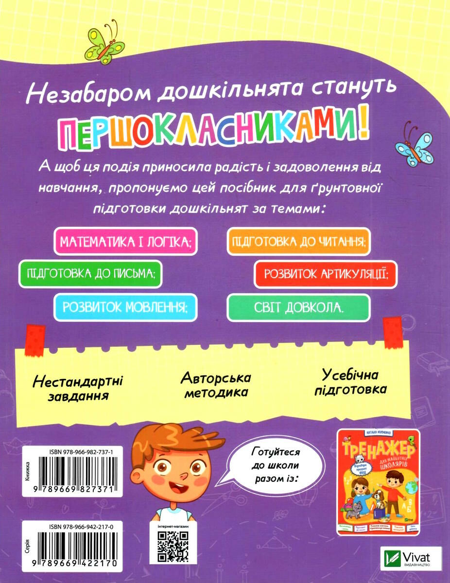 А щоб ця подія приносила радість і задоволення від навчання, пропонуємо цей посібник для ґрунтовної підготовки дошкільнят за темами: