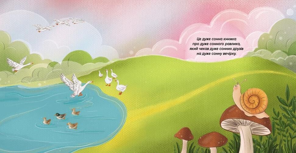 Дуже сонна вечiрка — нiжна казка перед сном про сонного Равлика, який чекає друзiв Лiнивця, Черепаху та Котика на особливу вечiрку. Тиха, повiльна й заспокiйлива iсторiя, що допоможе розслабитися i створити власний ритуал засинання.