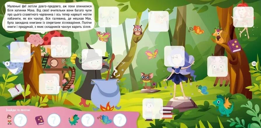 Скільки на галявині чарівних фей, а скільки гномів? Нумо лічити! Виконуючи завдання на кожній сторінці, дитина розвине спостережливість і навички лічби. А ще дізнається багато цікавинок про казкових істот, що живуть у чарівному світі, зможе вигадати свої історії за малюнками, що важливо для розвитку фантазії, творчого й логічного мислення вашого маленького дослідника. Отож запрошуємо вивчати навколишній світ разом з пізнавальною книжкою «Феї».