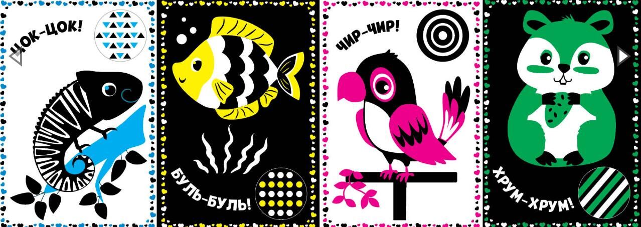 Серія «Контрастні картинки» створена для немовлят, які тільки-но починають пізнавати світ. Вона містить великі чорно-білі картинки з певними акцентними кольорами, які буде зручно розглядати малечі, лежачи в ліжечку чи бавлячись на килимку. У кожній книжечці є наліпки, якими можна урізноманітнити та доповнити зображення через певний час або ж використати їх для створення власної картинки. Видання серії допоможуть малюкові розвинути зір і сприйняття, навчитися фокусувати погляд, удосконалити навички візуального відслідковування та розпочати знайомство з кольорами.
