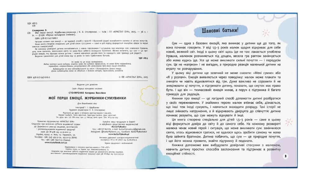 Наша книга створена спеціально для дітей віком 1,5–3 роки — саме в цей період формується емоційна сфера та перші навички саморегуляції.