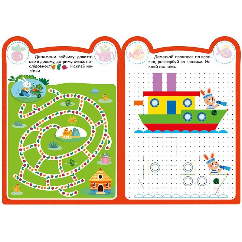 Ці книжки для допитливих, активних і кмітливих малюків. Вони містять творчі завдання, виконання яких допоможе розвинути просторове та логічне мислення, фантазію й увагу дітлахів. Яскраві ілюстрації та наліпки сприятимуть формуванню естетичного смаку та уяви.