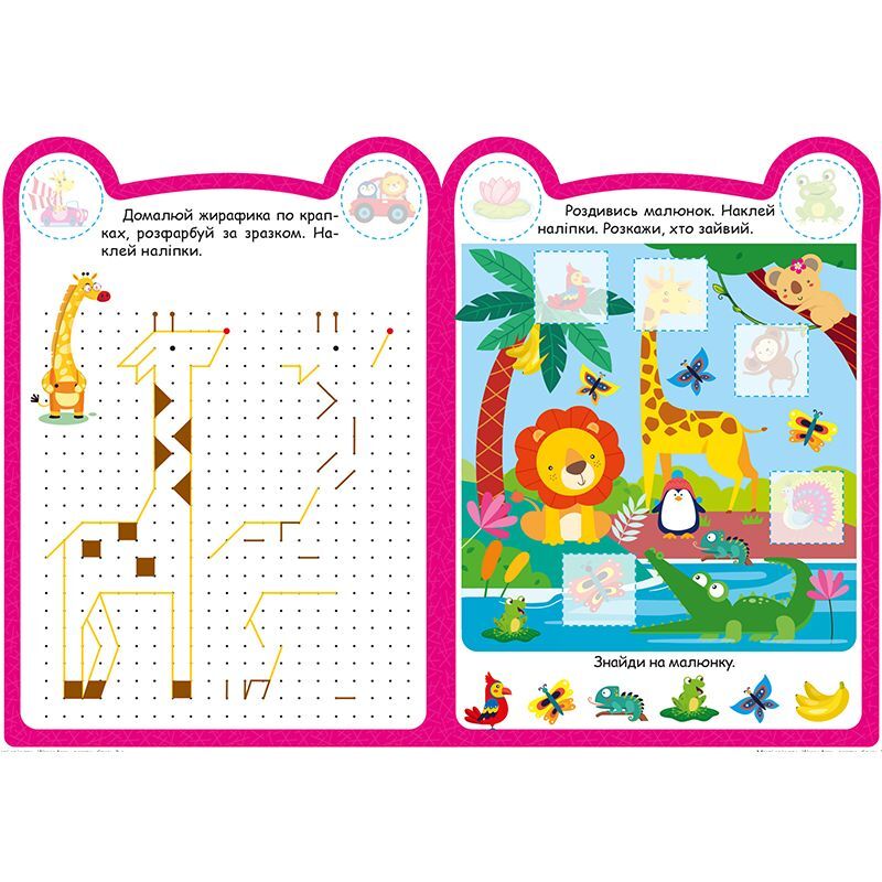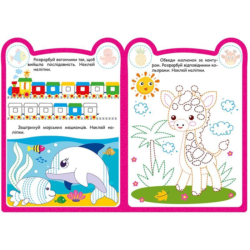 Ці книжки для допитливих, активних і кмітливих малюків. Вони містять творчі завдання, виконання яких допоможе розвинути просторове та логічне мислення, фантазію й увагу дітлахів. Яскраві ілюстрації та наліпки сприятимуть формуванню естетичного смаку та уяви.