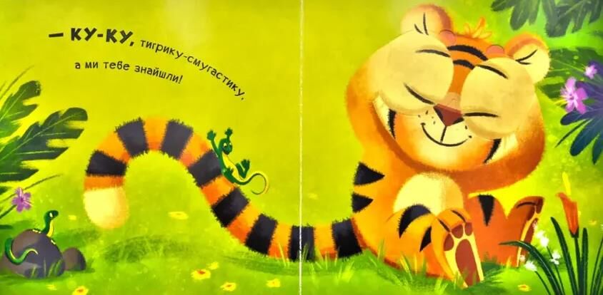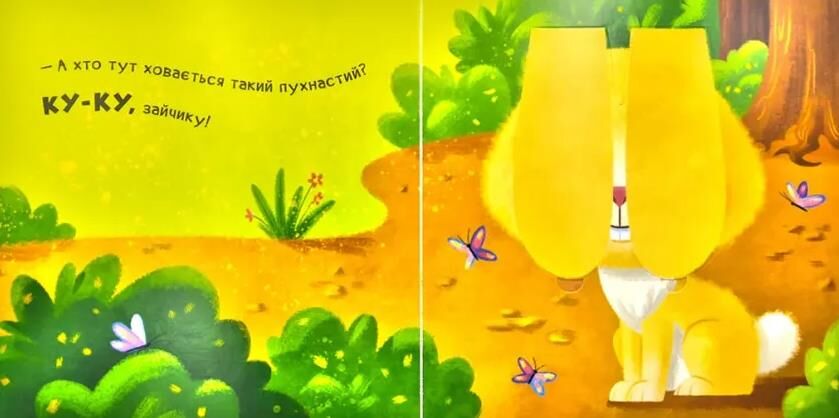 Ку-ку! А де ж наш зайчик? Ось він! І знову зник. А де ж наша совонька? Ось вона, ось вона! Ку-ку, совонько! Здається, тут була жабка... Де ж вона? Ой, а де ж наше малятко, де ж ти є? А, ось де ти! Нумо тепер усі разом грати в хованки!
