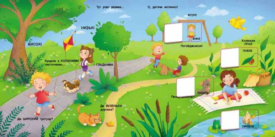 Навколо так багато схожого і відмінного. Достатньо лиш уважно роззирнутися навкруги. Нумо вивчати, чим схоже й відмінне те, що ми бачимо навколо. Ми зазирнемо в різні куточки: - завітаємо до парку, побуваємо за містом, - погуляємо в лісі, - відпочинемо в аквапарку, - пограємо у хованки. Ох і цікаві будуть пригоди!