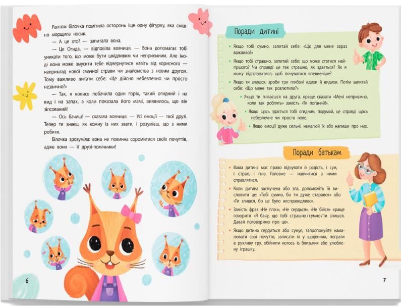 ТЕРАПЕВТИЧНІ КАЗКИ ПРО ЕМОЦІЇ для дітей молодшого шкільного віку та їхніх батьків. У казках — знайомі шкільні й повсякденні ситуації, у яких дитина переживає сильні почуття: радість, сум, гнів, страх, огиду, здивування. З головними героями книжки ваша дитина вчиться розпізнавати емоції та розуміти, навіщо вони потрібні. У цьому виданні зібрані історії про оцінки в школі, страх лікарів, заздрість, невпевненість у собі, труднощі з навчанням і перші конфлікти з друзями. Герої показують, що будь-які емоції можна зрозуміти й опанувати без страху та сорому. Кожна казка доповнена короткими поясненнями й порадами психологині для дітей і дорослих. Вони допомагають обговорити прочитане, назвати емоцію та зрозуміти, як діяти у складний момент. Книга підходить для спільного читання й розмов без тиску та оцінок. Авторка — Людмила Трихліб, психологиня, магістр психології, арттерапевтка й фахівчиня з батьківсько-дитячих стосунків. Вона має досвід роботи з дітьми в школах, садочках та індивідуальній практиці. Спеціалізується на емоційному розвитку дітей, підтримці батьків і практичній психології для сімей. У виданні зібрано її практичні поради для батьків і дітей.