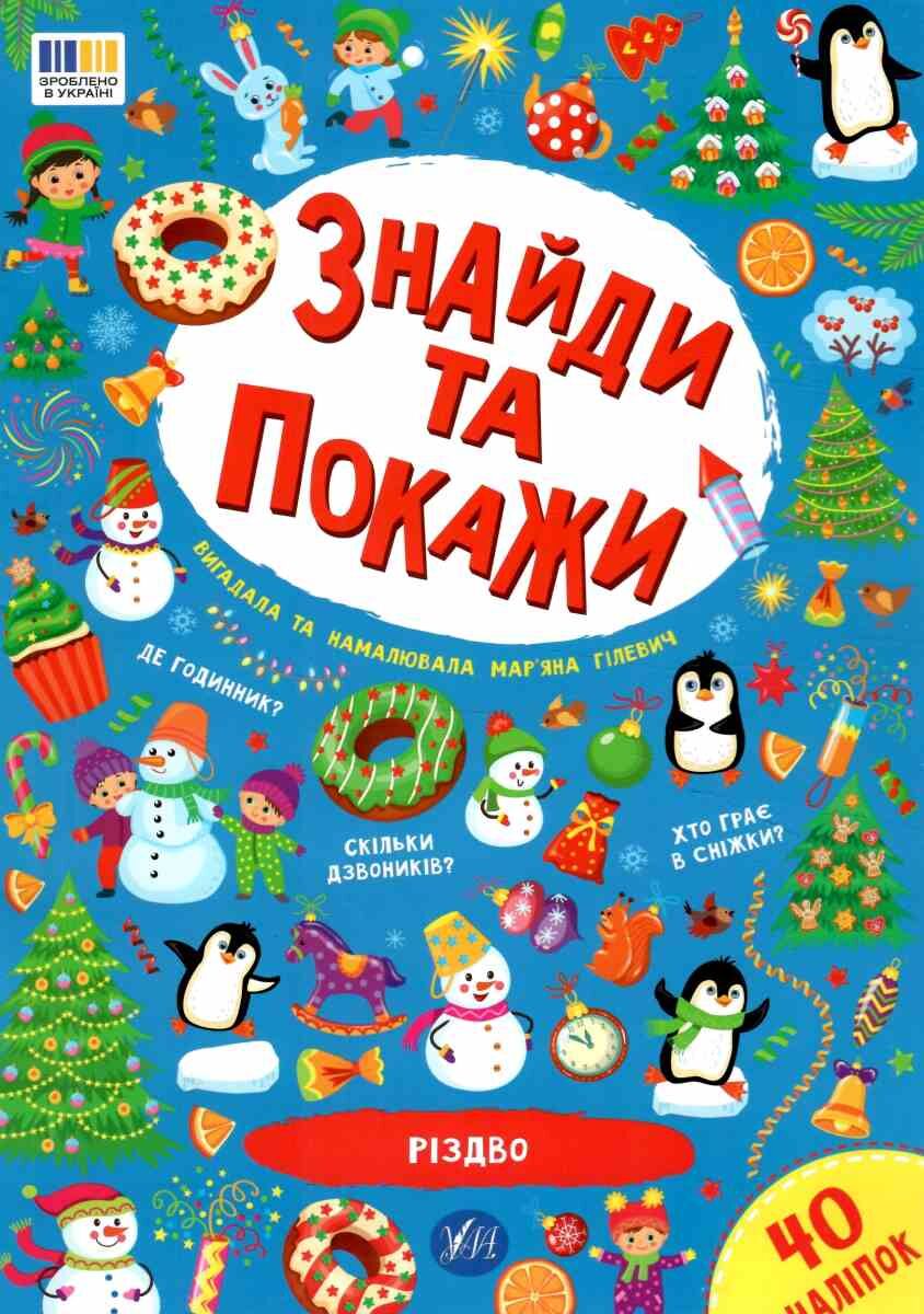 Це видання подарує дитині відчуття чарівної атмосфери Різдва. Виконуючи завдання, маленький розумник розвине уяву, потренує пам’ять та увагу, навчиться міркувати, творчо підходити до вирішення різних завдань і зможе відчути себе справжнім слідопитом! Кожен розворот книжки містить велику барвисту ілюстрацію з безліччю різноманітних кумедних персонажів і запитання, що підкажуть, які несподіванки потрібно шукати на картинці. Видання призначене для дітей віком від шести років.