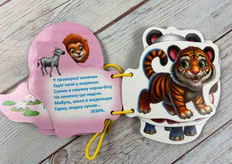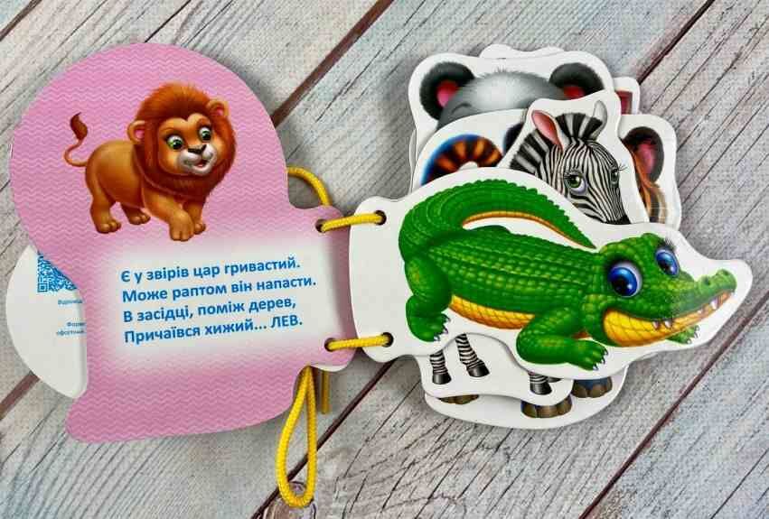 Це не просто книжка — це нейротренажер у вигляді гри. Шнурівка розвиває дрібну моторику, а значить і мовлення, пам’ять та логічне мислення. Фігурні сторінки сприяють візуальній диференціації. Дитина з цікавістю вчиться впізнавати тварин, називати їх, наслідувати звуки й дії.