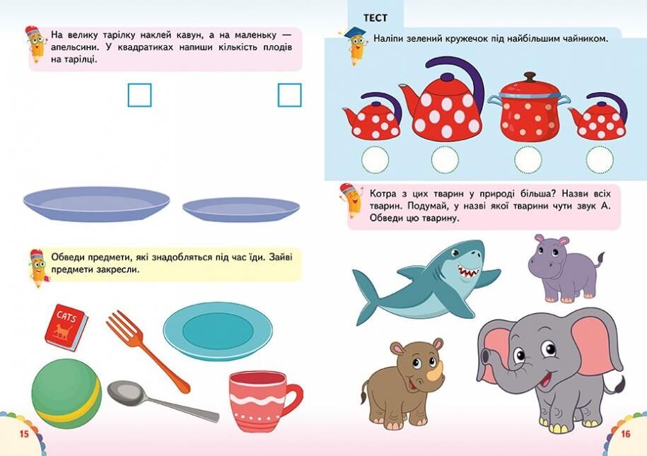 Дрібної моторики — ігри з наліпками, обведення фігур та малювання за зразком зміцнюють моторику та готують руку до письма.