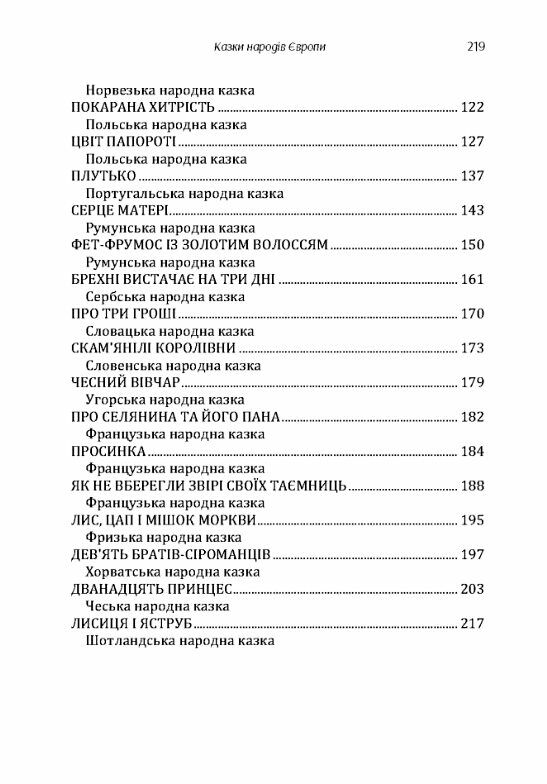 Чимало з цих казок ти, певне, знаєш - їх тобі читали або розповідали мама чи тато, бабуся чи дідусь. Згодом, опанувавши грамоту, ти познайомився і з іншими казками: німецькими - «Бременські музиканти», «Кіт у чоботях», французькими - «Просинка», «Як не вберегли звірі своїх таємниць», англійськими - «Джоан і кривий гусопас», «Дік Віттінгтон та його кішка», польськими - «Покарана хитрість», «Цвіт папороті», румунськими - «Серце матері», «Фет-Фрумос із золотим волоссям», японськими - «Таро-Силач», «Сандалії-скороходи». Відомі тобі, безперечно, і чеська казка «Дванадцять принцес», і лужицька «Співуча липка», і словенські «Скам'янілі королівни».