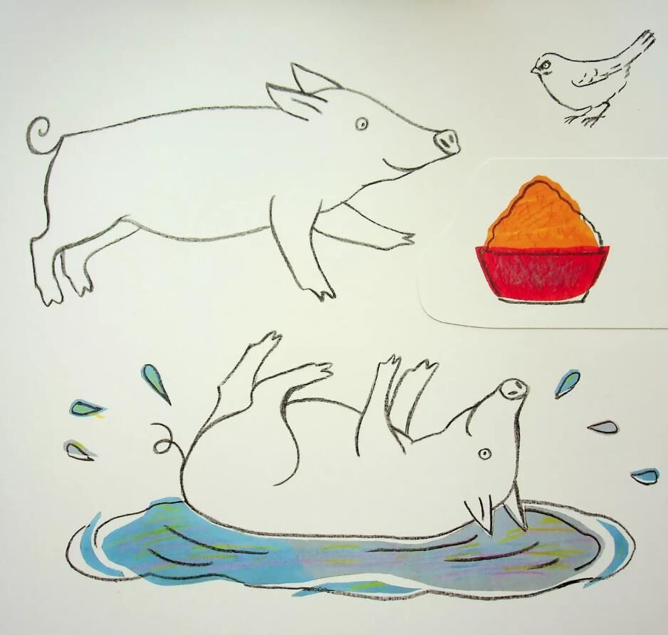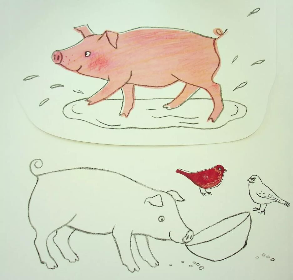 Це не просто розмальовка зі свійськими тваринами, це розмальовка гра, у якій малюк знайде несподівані перевтілення та цікаві пригоди. На одному розвороті дитина побачить щось на зразок мультика: ось мама- качка з каченятами пливе по ставку, а відкриваєш клапани і птахи один за одним пірнають у воду. Варто лише відгорнути віконце і собака розірве - газету, порося бовтнеться в калюжу, а козенята припинять буцатися. «По-дитячому» розфарбовані малюнки нададуть упевненості малюкові: він не боятиметься вилізти за контур або дібрати неправильний колір. Після того, як ви розфарбуєте всю книжку, ви можете ще довго гратися з нею й роздивлятися кумедні малюнки.