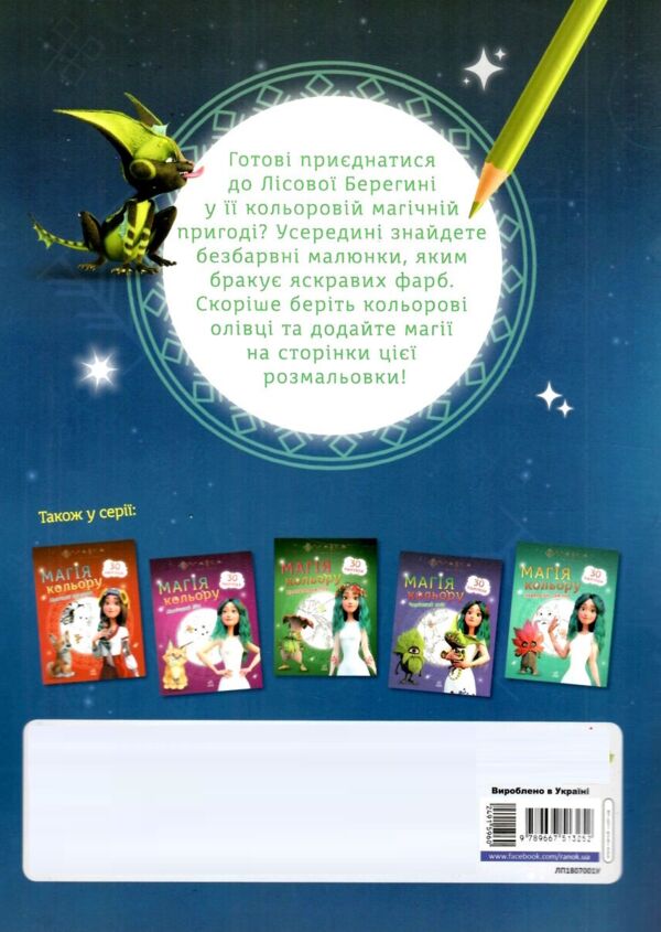 Готові приєднатися до Лісової Берегині у її кольоровій магічній пригоді? Усередині знайдете безбарвні малюнки, яким бракує яскравих фарб. Скоріше беріть кольорові олівці та додайте магії на сторінки цієї розмальовки!