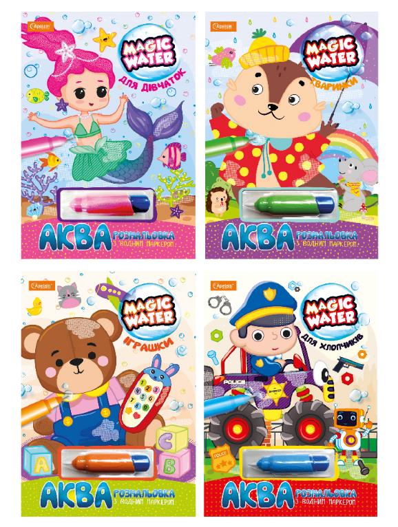 У наборі для малювання водою "Magic Water" втілений найсучасніший підхід до творчості, коли все просто, зручно, цікаво та весело. Дітям легко розфарбовувати великі малюнки з товстими контурами. Водний маркер має зручну для дитини форму, завдяки чому його легко тримати маленькою дитячою ручкою.
