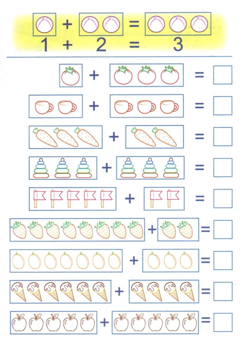 Подивись та розфарбуй Цифри фігури і приклади