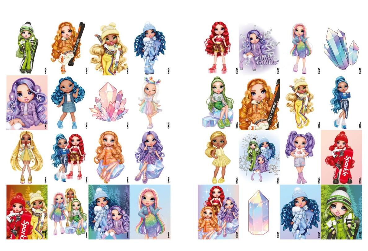 Що всередині? - 16 яскравих сторінок формату А4 (21х29 см) з розмальовками, завданнями, простором для малювання та кольоровими стікерами для самостійного використання; - активіті-формат, що залучає дитину до розв’язання логічних завдань, творчих вправ і креативних ігор; - захоплива подорож із улюбленими героїнями Rainbow, які надихають і мотивують.