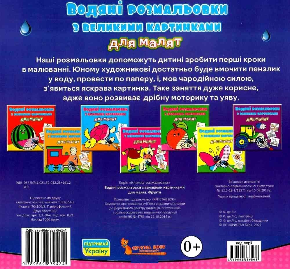 розмальовки водяні з великими картинками для малят фрукти