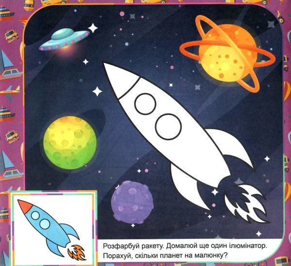 розмальовка з кольоровим фоном транспорт з підказкою від 3 років "Джамбі"