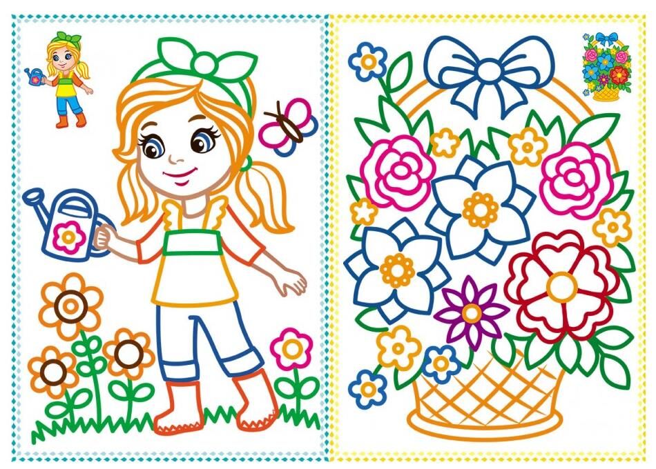Розмальовка створена для дівчаток, які хочуть не просто заповнювати рисунки кольором, а навчатися справжньому живопису.