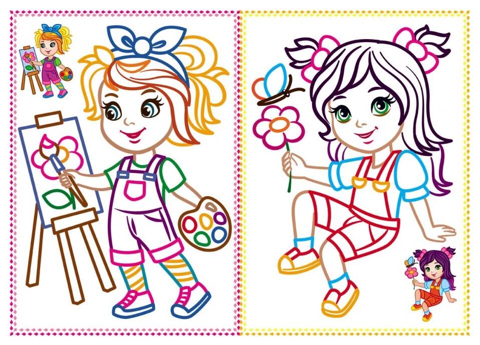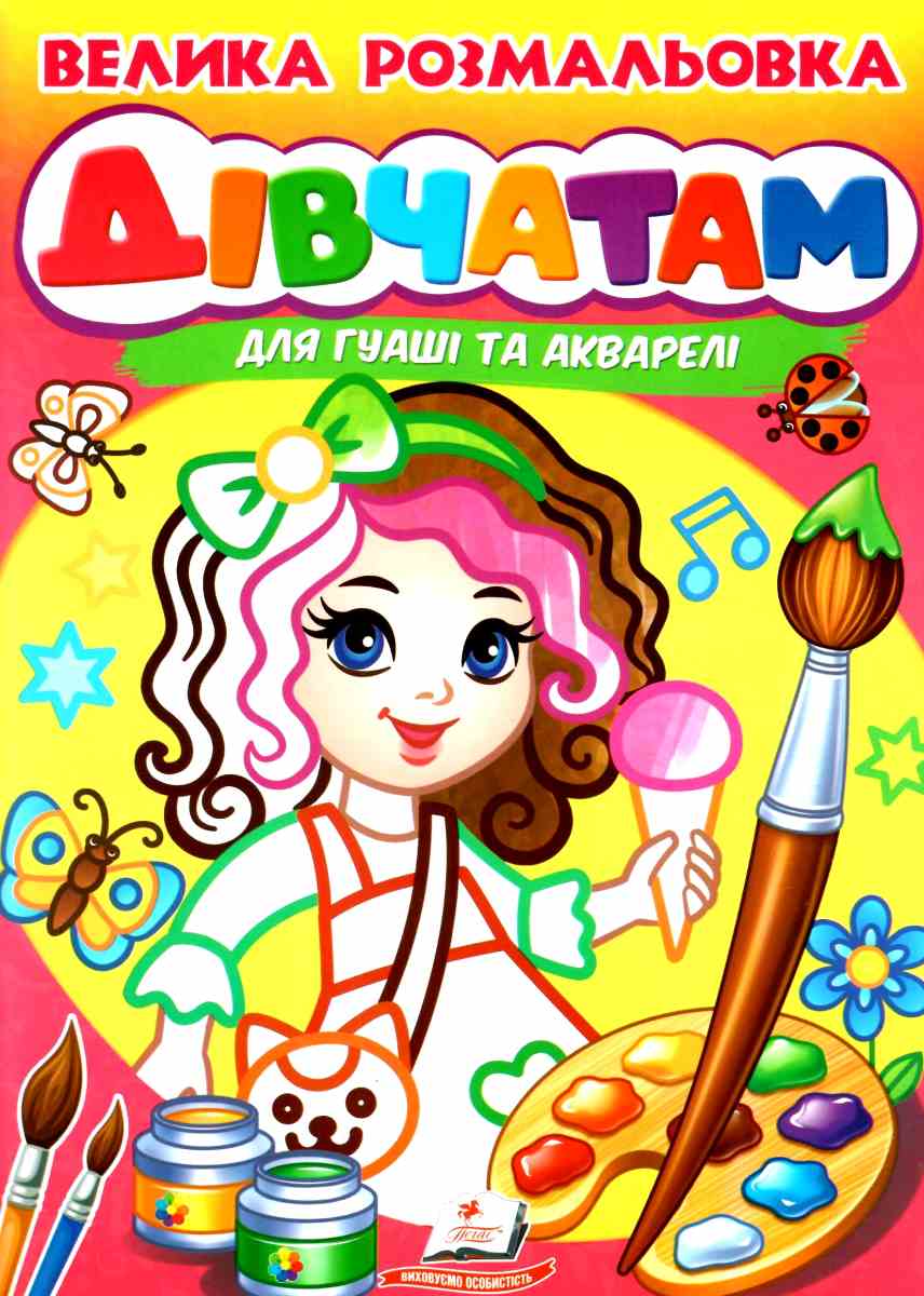 Яскрава і захоплива розмальовка з великими контурами та чіткими лініями створена спеціально для дівчаток, які мріють освоїти малювання пензликом.