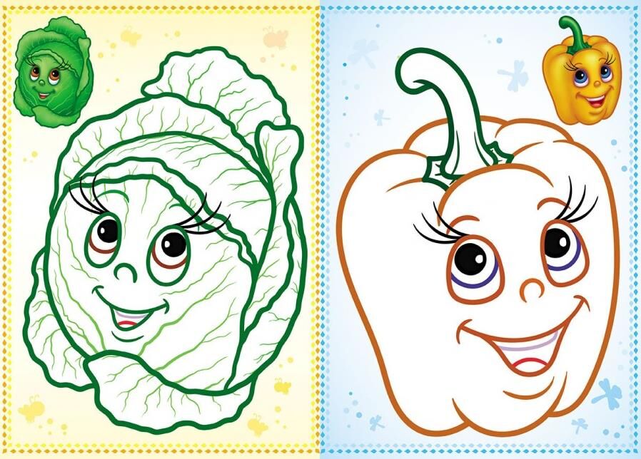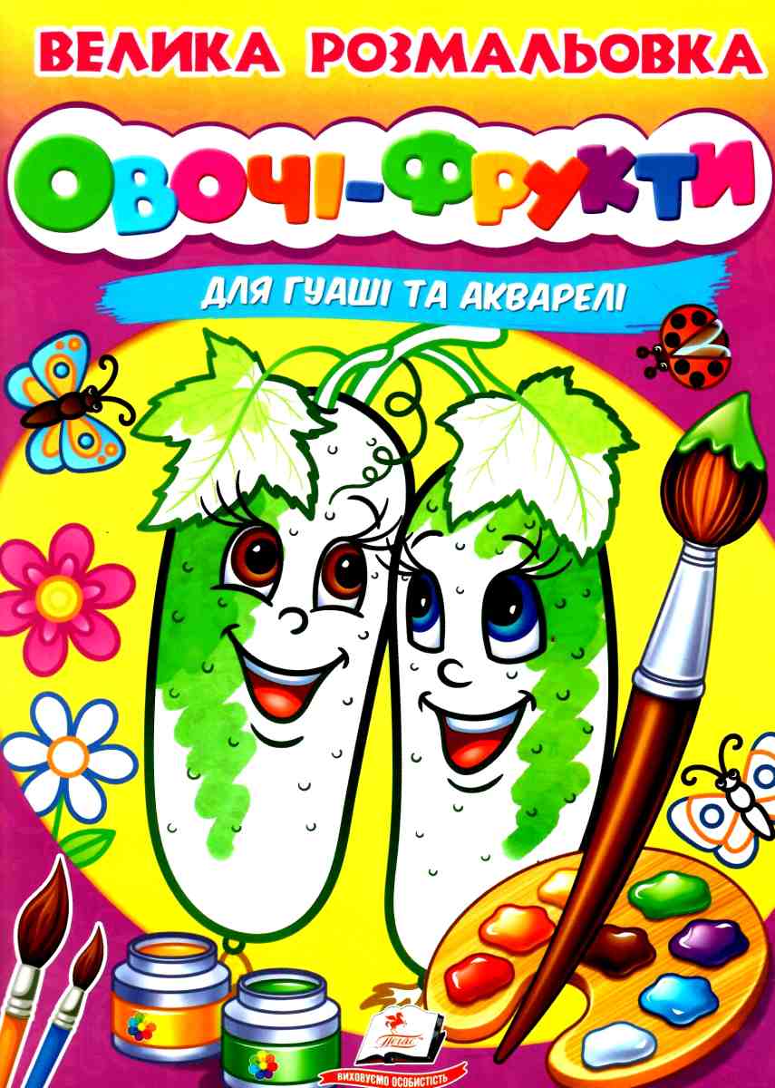 велика розмальовка овочі-фрукти для гуаші та акварелі купити