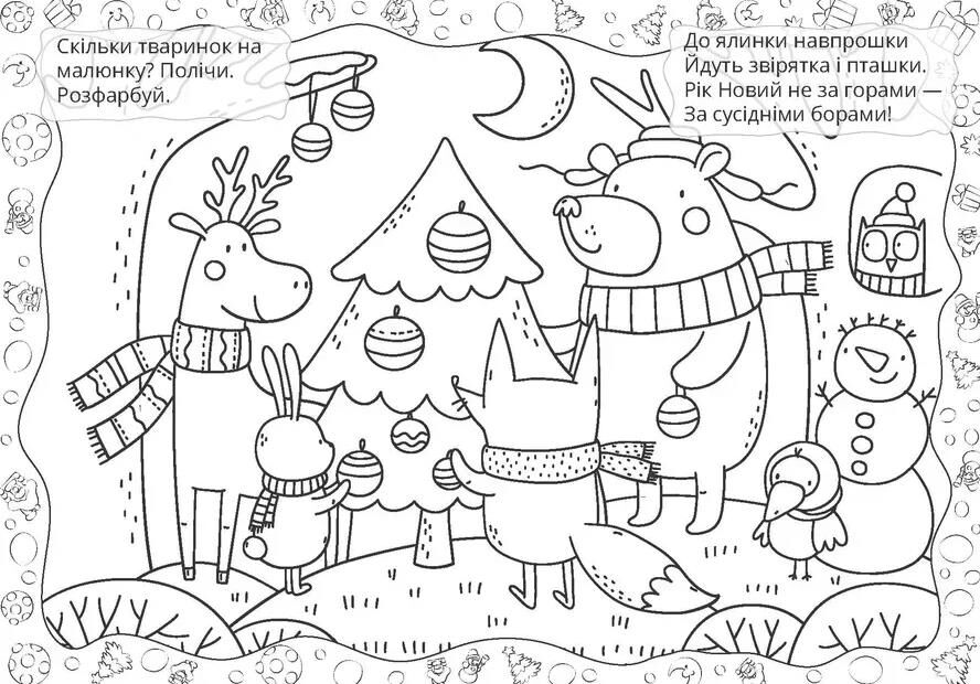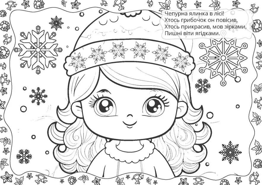 Така різдвяна розмальовка зробить дозвілля дитини цікавим і корисним, адже містить чудові ілюстрації, які потрібно розфарбувати, гарні коротенькі віршики, які можна вивчити до свята, та 70 яскравих блискучих наліпок, якими можна прикрасити подарунки друзям, листівки рідним та інше.