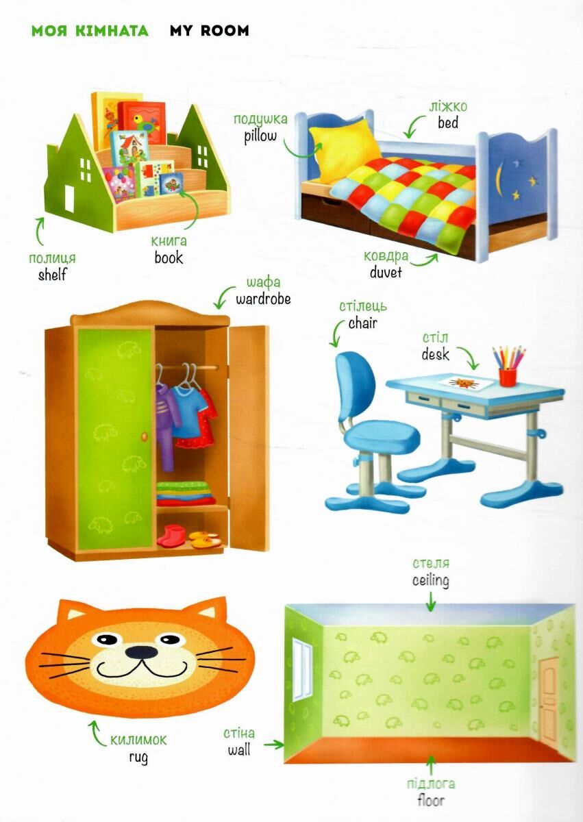 Ця яскрава і велика книжка допоможе малюкові зробити перші кроки у вивченні англійської мови. Усередині — прості й зрозумілі слова з яскравими ілюстраціями, які легко запам’ятати. Дитина познайомиться з англійською та українською абетками, що стане чудовою основою для подальшого розвитку і навчання. Книжка створена спеціально для малюків: міцні картонні сторінки витримають маленькі ручки, а пізнавальний зміст перетворить навчання на цікаву гру.
