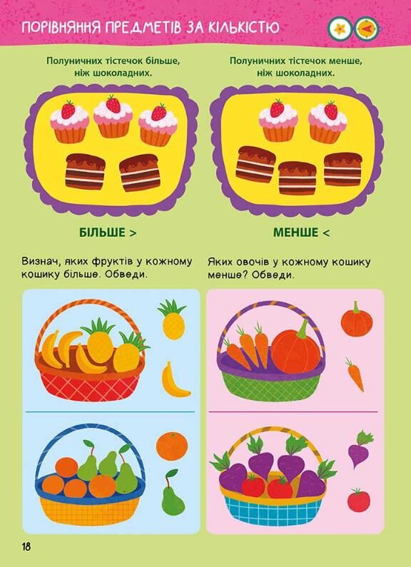 ПОВНИЙ КУРС ДОШКІЛЬНОЇ МАТЕМАТИКИ! Завдяки цьому яскравому виданню дитина здобуде свої перші знання з математики, що стануть у пригоді вже незабаром — під час занять у школі. Книга містить вісім розділів: число та цифра; лічба; порівняння; склад числа; додавання й віднімання; орієнтування в просторі; форми та фігури; задачі. Кожен із розділів складається з кількох необхідних тем, які подаються в порядку ускладнення. Отже, крок за кроком дошколярик засвоїть увесь необхідний матеріал.