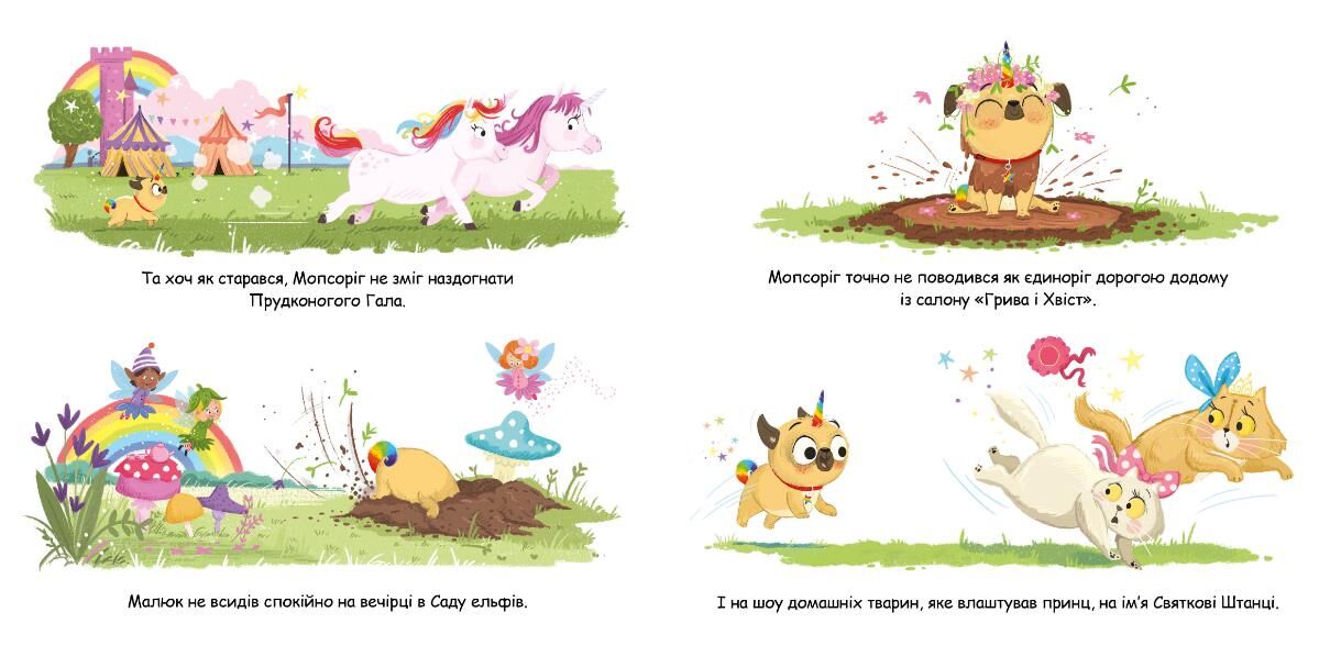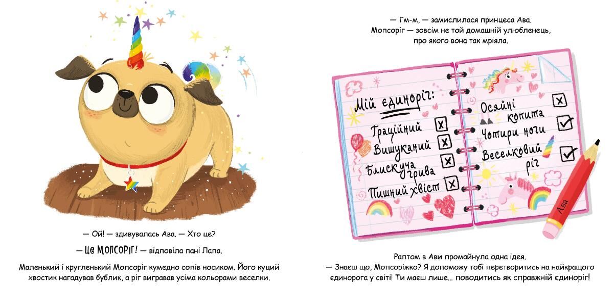 Він низенький і м’якенький. Обожнює рити нори й ганятися за котами. І він аж ніяк НЕ той вишуканий єдиноріг, про якого так мріяла принцеса Ава. Чи зможуть принцеса та Мопсоріг стати найкращими друзями?