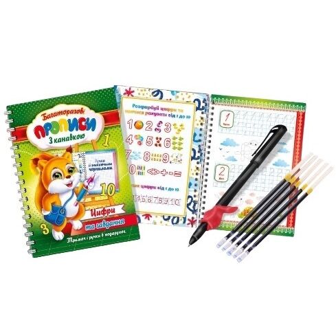 багаторазові прописи з канавками Цифри + ручка пиши-стирай + 5 стрижнів