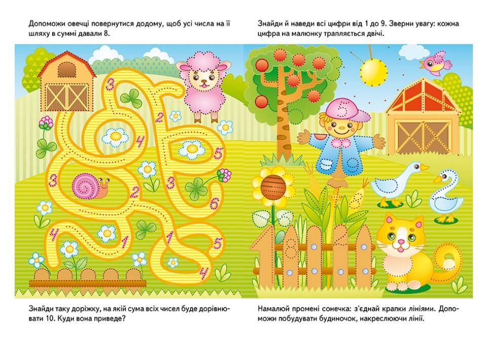 Веселі завдання з малюванням, лабіринтами та підрахунком предметів розвивають спостережливість і посидючість.