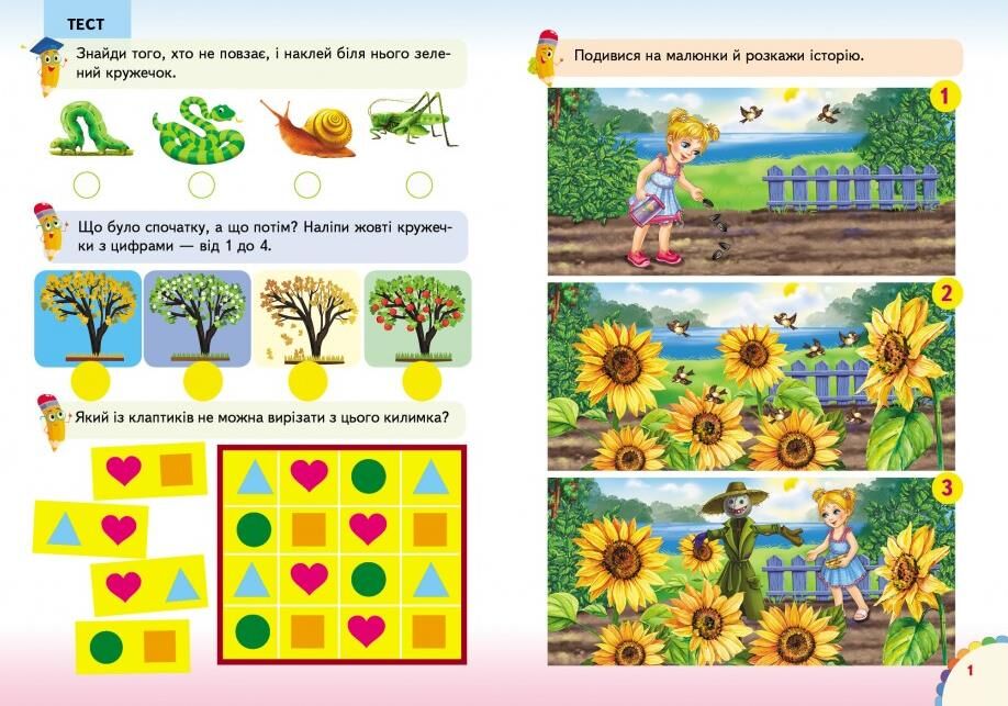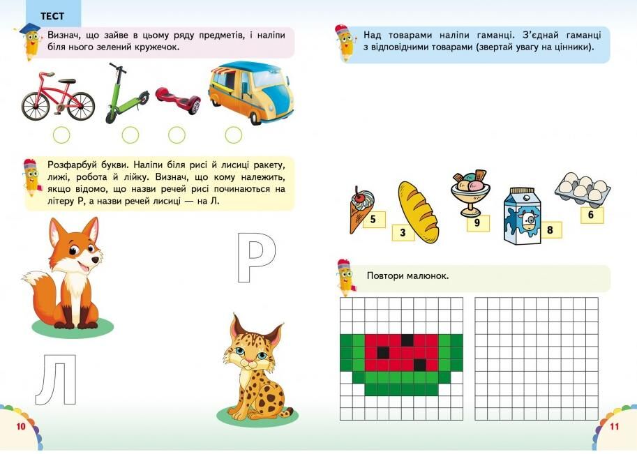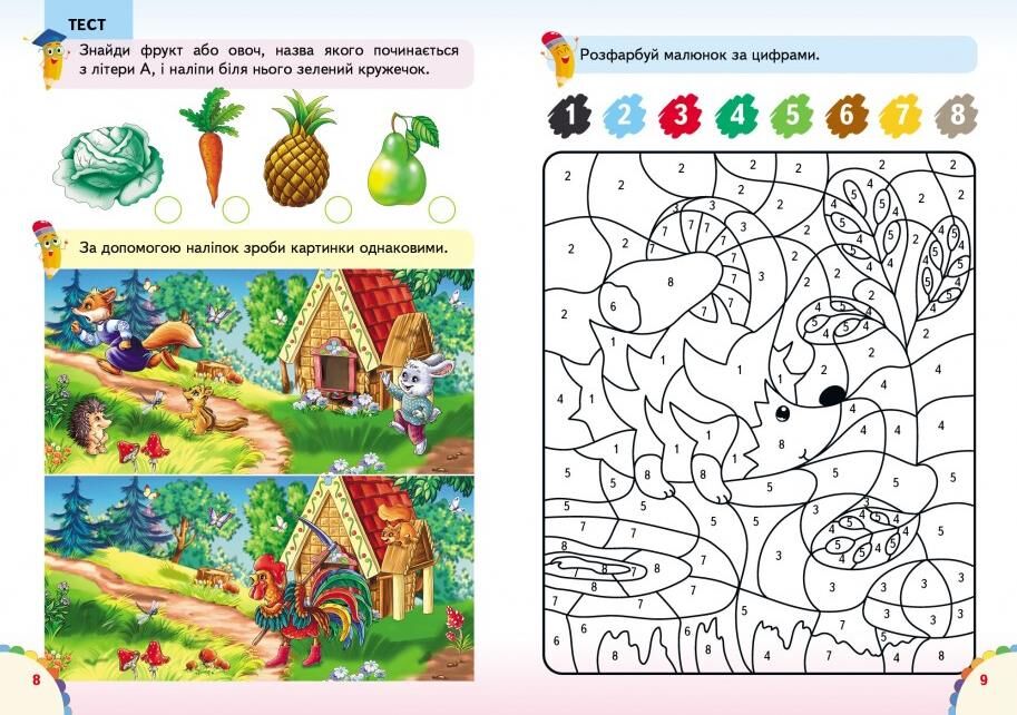 Книга з серії "Веселі уроки та тести" призначена для дітей від 5 років і включає 65 наліпок.