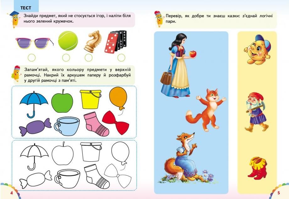 Розвиток кмітливості: Завдання на пошук зайвого предмета, складання логічних пар та знаходження відмінностей тренують увагу та логічне мислення.