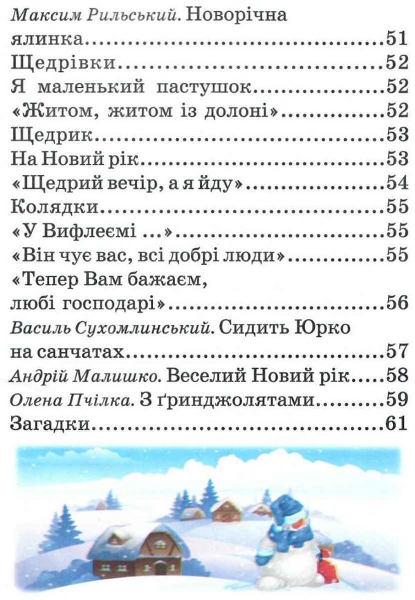 Прo зиму, лимоні свята і веселі розваги цієї пори року юним читачам розкажуть вірші та оповідання, народні казки й загадки, зібрані в нашій читанці. Тож кожен, хто візьме в руки цю книжку, порине в цікаве й веселе читання. А прочитавши її, поділиться святковим настроєм із своїми друзями, адже зима й справді — яскрава та радісна пора.