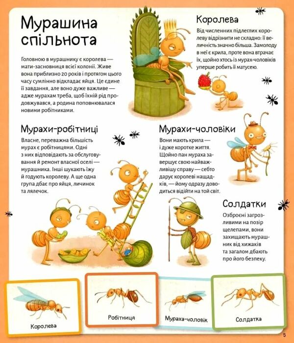 Що ви знаєте про мурах? Що це маленькі трударки, які споруджують великі фортеці? Хіба можуть вони чимось вразити, га? Можуть! Насправді світ мурах дивовижний, і туди, безперечно, варто зазирнути. Мешкають там і страхітливі кровожерливі воячки, і мисливиці за головами, і майстрині, які вправно зрізають листя, тчуть, розводять попелиць тощо. А дехто з місцевих промишляє тим, що вдирається до чужих помешкань і обкрадає їх. Усе як у людей, чи не так? То дізнаймося про мурах більше!