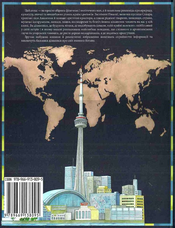 «Ілюстрований атлас світу» від видавничого дому «Пегас» представляє собою унікальне видання з вражаючими ілюстраціями та змістовними тексами Елеонори Барзотті. Цей атлас відзначається своєю неперевершеною деталізацією та вмістом, що захоплює, включаючи географію, природу, історію та культуру різних країн світу. Він не лише слугує як путівник, а й є глибокою енциклопедією в усіх цих аспектах. Його особливість полягає в тому, що він успішно поєднує інформативність, зручність у викладі та наукову глибину. Розмір цього видання становить 24,5 х 32 х 1 см, що робить його зручним у використанні та перегляді.