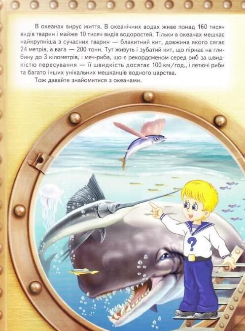 Дітям цікаво пізнавати світ, дістаючи відповіді на всі свої численні запитання. В цій чудовій книжці у доступній формі розповідається про океани та моря, річки та озера, гори та печери, про їх унікальних мешконців, а також про дивовижні прояви природи — цунамі, смерчі, міражі та ін.