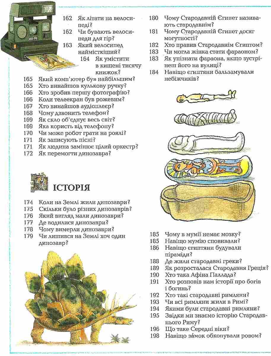 Звідки я взявся? Чому кораблі не тонуть? Із чого зроблені зорі? Хто такі динозаври? Ці та інші запитання діти часто ставлять дорослим, прагнучи пізнати навколишній світ. У великій дитячій енциклопедії маленький «чомучка» не тільки знайде відповіді на всі запитання, що його цікавлять, а й дізнається багато нового та дивовижного. Таємниці природи, історичні події, винаходи та відкриття, легендарні постаті – про все це розповідає енциклопедія. Короткі, змістовні статті написані легко й захоплююче. Чудові кольорові ілюстрації збуджують фантазію і пожвавлюють текст. Прагнете, щоб ваша дитина росла допитливою, розумною та ерудованою і все-все знала? Тоді ця книжка для неї!