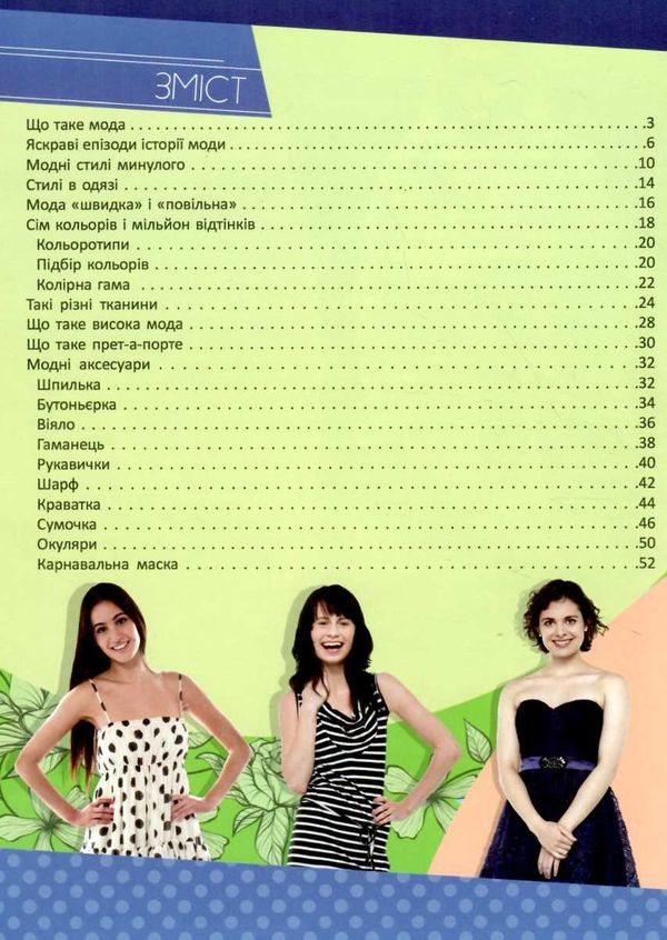 Ця книжка — зручний путівник величезним, розмаїтим і складним світом моди, стилю і краси. Тут читач знайде цікаві відомості про моду і кравецьке мистецтво всіх часів і народів, про вплив моди на історію людства, про кращих майстрів моди минулого і сучасності, про актуальні модні тренди і фешн-індустрію.