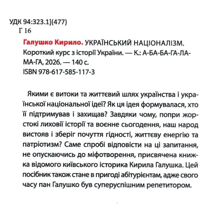 "Що таке Україна? Звідки вона взялася? Який сенс української ідеї?" Саме на ці питання намагається відповісти книжка Кирила Галушко "Український націоналізм. Короткий курс з історії України". Стисло, але чітко та аргументовано, автор розповідає про історію України та про місце розуміння націоналізму в розвитку нашого суспільства.