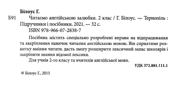 англійська мова 2 клас серія читаємо залюбки